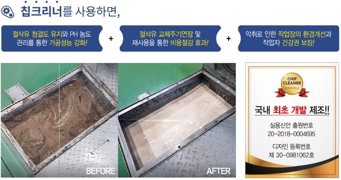 We handle products of various industries and are Korea's sole manufacturer of chip cleaners, which are essential for the machine tool processing environment.